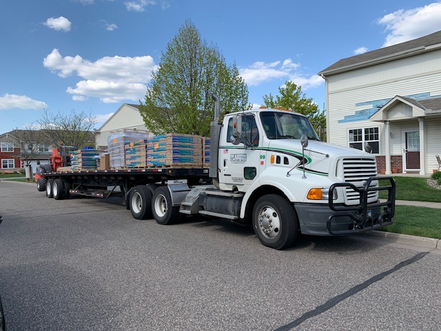 This is a great example of how safety and skill come together in all of our drivers. Chris is delivering cabin materials to a building site near Mille Lacs Lake. Our trailer-mounted forklifts can get the materials to many different remote locations.