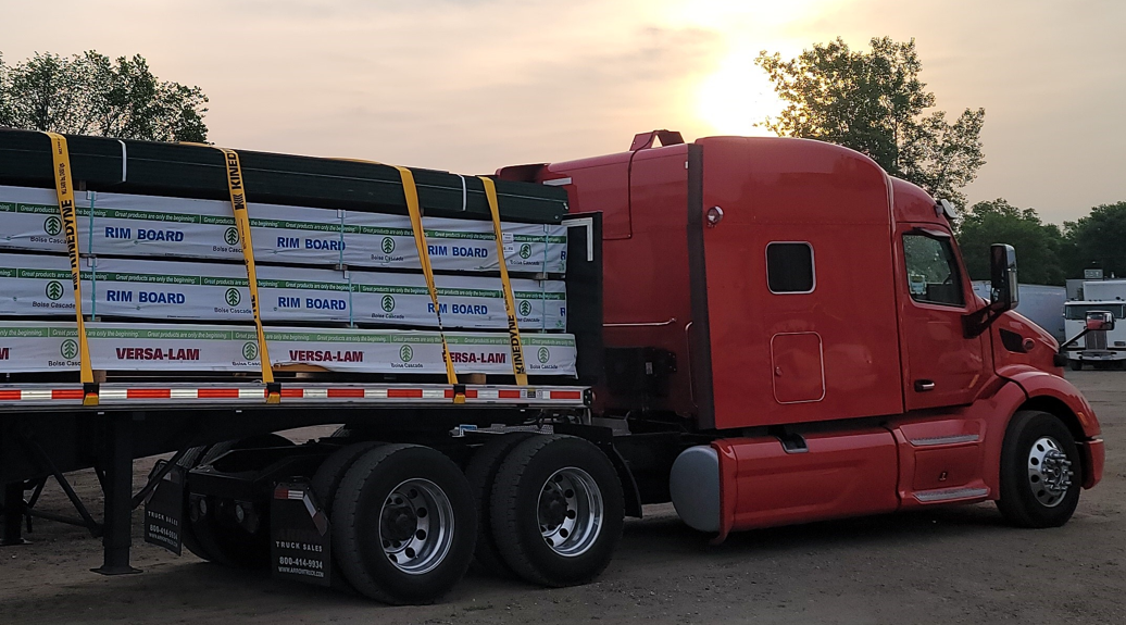 Nick has a full load of engineered lumber from Boise Cascade, one of our largest vendors. Great Strapping Nick!